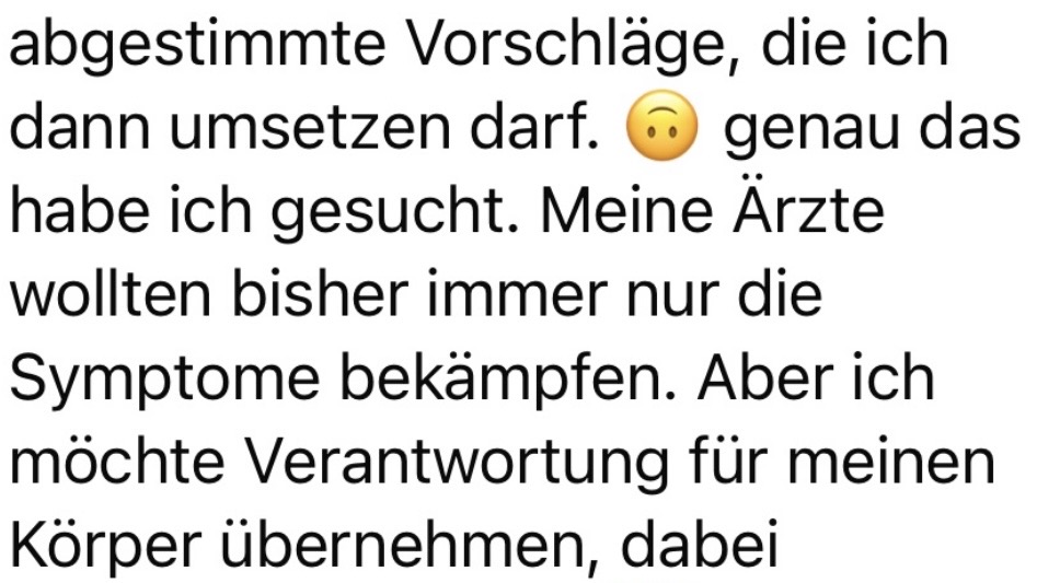Mit meinen Methoden begleite ich dich Schritt für Schritt auf deinem Weg in Richtung Symptomfreiheit. Lerne außerdem, wie du wieder auf die Signale deines Körpers hörst und langfristig dein Wohlbefinden unterstützt.
